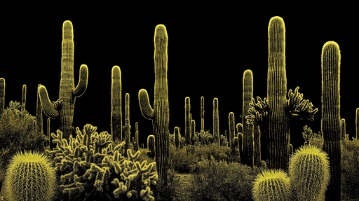 Αυτή η συναρπαστική ταπετσαρία τοίχου παρουσιάζει μεγαλοπρεπείς κάκτους, φωτισμένους με ένα ζωντανό εφέ σε μαύρο φόντο που δημιουργεί μια θεαματική...