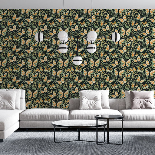 Προβολή πλήρων λεπτομερειώνΤαπετσαρία τοιχωμάτων με πεταλούδες | Μοτίβα πεταλούδων σε μαύρο φόντο με διακριτικά φυλλώματα
