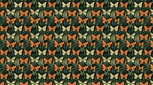 WonderMuralΤο ζωηρό μας Ταπετοψηφίδωτο χαρακτηρίζεται από μοτίβα πεταλούδων σε αποχρώσεις πορτοκαλί και κρεμ που χορεύουν ανάμεσα σε στιλιζαρισμένα φύλλα σε σ...