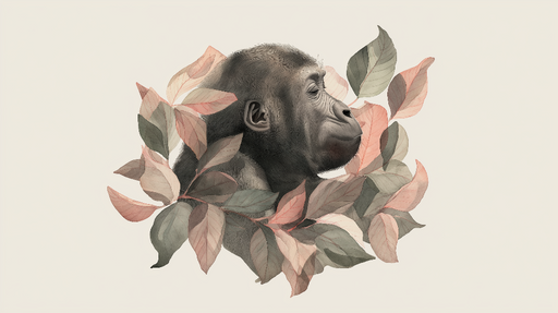 Προβολή πλήρων λεπτομερειώνTapete gorilla | Ένας επιβλητικός γορίλας πλαισιωμένος από κομψά φύλλα