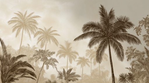 Προβολή πλήρων λεπτομερειώνTapete με φοίνικες | Ένας ζούγκλα από φοίνικες σε αποχρώσεις του μπεζ και του καφέ