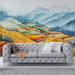 Ανακαλύψτε την Ταπετσαρία μας με μια εκπληκτική ορεινή τοπιογραφία, όπου οι αναβαθμισμένες εκτάσεις είναι διακοσμημένες με ζωντανά χρώματα που κυμαίνονται από φωτεινά κίτρινα έως ζεστά πορτοκαλί, δημιουργώντας μια καταπραϋντική οπτική αρμονία. Το ομιχλώδες φόντο τονίζει το βάθος της σκηνής, προσκαλώντας απόδραση και ηρεμία.