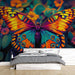Ταπετσαρία τοιχογραφίας πολύχρωμη πεταλούδα | Ζωντανό μοτίβο πεταλούδας σε φόντο με λουλούδια