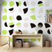Προσθέστε μια μοντέρνα και καλλιτεχνική πινελιά σε οποιοδήποτε δωμάτιο με την γεωμετρική ταπετσαρία τοίχου μας, διακοσμημένη με πολύχρωμα αφηρημένα σχέδια. Αυτός ο σχεδιασμός περιλαμβάνει διάφορα γεωμετρικά σχήματα σε πράσινο, μαύρο και μπεζ σε λευκό φόντο, δημιουργώντας μια δυναμική και συναρπαστική αισθητική.