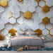 Ταπετσαρία τοίχου εξαγωνικό | Σχέδιο μαρμάρου και χρυσού