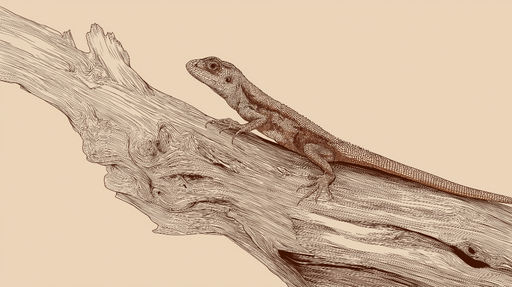 WonderMuralΑυτό το όμορφο ταπετσαρία τοιχωμάτων διαθέτει ένα στιλιζαρισμένο σαύρα που ξαπλώνει σε ένα ξερό κορμό δέντρου, προσφέροντας ένα οργανικό και γοητευ...