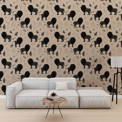 WonderMuralΑνακαλύψτε το Ταπετσαρία τοίχου με λιοντάρι μας, με ένα γοητευτικό μοτίβο μαύρων λιονταριών σιλουέτας, εντυπωσιακά διατεταγμένων ανάμεσα σε στιλιζα...