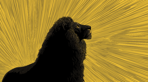 Προβολή πλήρων λεπτομερειώνTapete lion | Μακροβιότητα μιας λιονταρικής σιλουέτας σε ένα φωτεινό κίτρινο φόντο