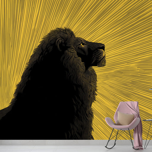 WonderMuralΤο εξαιρετικό μας ταπετσαρία τοίχου επιδεικνύει μια επιβλητική σιλουέτα λιονταριού, στιλιζαρισμένη με καθαρές γραμμές, σε ένα φωτεινό κίτρινο φόντο...