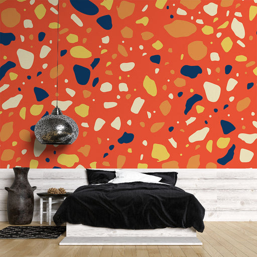 Προβολή πλήρων λεπτομερειώνΤαπετσαρία τοίχου terrazzo | Κόκκινο και πορτοκαλί αφηρημένο μοτίβο