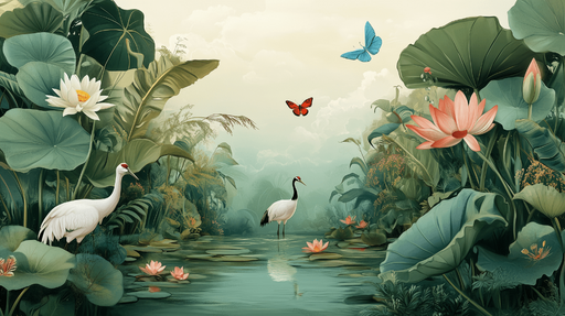Art'lolo```html Εξερευνήστε την εξωτική ομορφιά της ταπετσαρίας τοίχου τροπικής φύσης, με εντυπωσιακά πουλιά ανάμεσα σε γαλήνια νούφαρα και εκτεταμένο φύλλ...