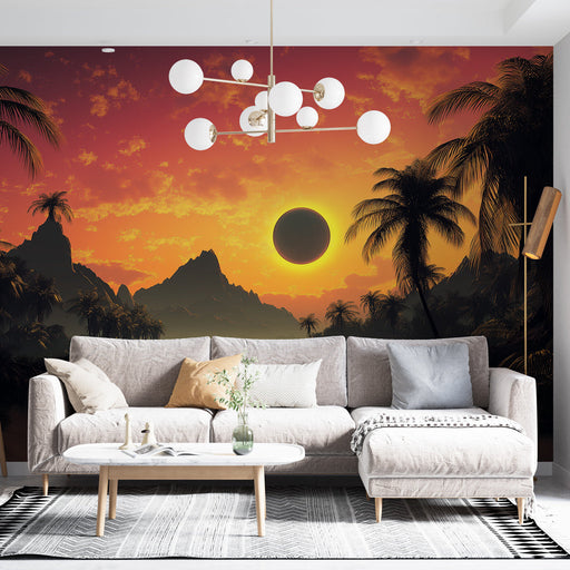 WonderMuralΤο ταπετσαρία μας αποκαλύπτει έναν πολυτελή τροπικό τοπίο με ένα λαμπερό ηλιοβασίλεμα πίσω από μαγευτικά βουνά. Οι ζεστές αποχρώσεις του πορτοκαλί ...