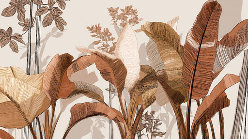 WonderMuralΑνακαλύψτε την ταπετσαρία τοίχου μας με στυλιζαρισμένα μοτίβα από τροπικά φύλλα, παρουσιασμένα σε ζεστές αποχρώσεις του καφέ που αποπνέουν ζεστασιά...