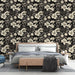 Tapete floral μαύρο και μπεζ | Μοτίβο λουλουδιών και φυλλώματος σε σκούρο φόντο