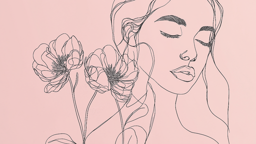 Προβολή πλήρων λεπτομερειώνΤαπετσαρία τοιχογραφίας floral face | Γραμμικός σχεδιασμός γυναίκας περιτριγυρισμένης από λευκά λουλούδια σε ροζ φόντο