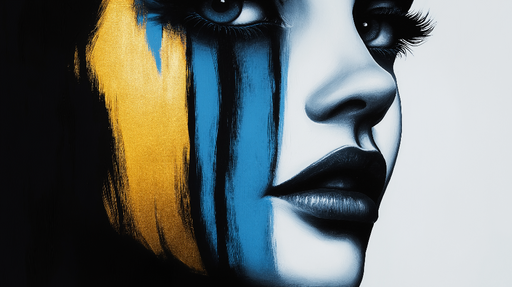 Προβολή πλήρων λεπτομερειώνΚαλλιτεχνικό πρόσωπο tapeta | Μια ζωντανή σύνθεση σε αντιθετικά χρώματα
