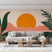 Η ταπετσαρία τοίχου μας αναδεικνύει ένα υπέροχο στυλιζαρισμένο ηλιοβασίλεμα, τυλιγμένο σε αποχρώσεις του πορτοκαλί και του ροζ που προκαλούν τη ζεστασιά ενός καλοκαιρινού βραδιού. Οι σιλουέτες των τροπικών φυτών πλαισιώνουν τη σκηνή και προσθέτουν μια πινελιά άγριας φύσης, δημιουργώντας μια χαλαρωτική και ζεστή ατμόσφαιρα.
