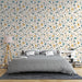 Tapete floral | Ένα λεπτό μοτίβο από κίτρινα και μπλε λουλούδια σε κρεμ αχρωμο φόντο