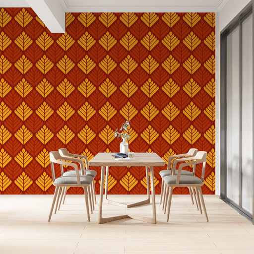 Studio SamaΑνακαλύψτε τις ταπετσαρίες τοίχου με φύλλα με γεωμετρικό μοτίβο σε ζεστούς τόνους πορτοκαλί και κίτρινου. Ιδανικό για να προσθέσετε μια πινελιά ζεσ...