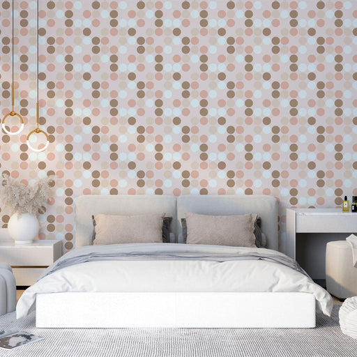 Προβολή πλήρων λεπτομερειώνΤαπετσαρία τοίχου με κουκκίδες | Ροζ φόντο με κυκλικά μοτίβα