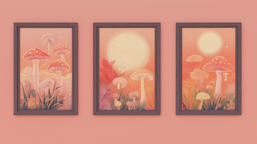 WonderMuralΤο αρχικό μας ταπετσαρία τοίχου διαθέτει ένα τρίο ζωγραφιές που απεικονίζουν πολύχρωμα μανιτάρια σε απαλές αποχρώσεις ροζ και πορτοκαλί, προκαλώντα...