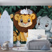 Αυτή η ταπετσαρία τοίχου διαθέτει μια παιχνιδιάρικη και χαρούμενη σκηνή με χαριτωμένα ζώα: μια χαμογελαστή καμηλοπάρδαλη, ένα χαρισματικό λιοντάρι και έναν στοργικό ελέφαντα, όλα περιτριγυρισμένα από πλούσια φύλλα και ζωντανά λουλούδια. Οι φωτεινές αποχρώσεις και οι φιλικές εκφράσεις των ζώων προσθέτουν μια πινελιά χαράς και μια ζεστή ατμόσφαιρα, ιδανική για το παιδικό δωμάτιο ή έναν χώρο παιχνιδιού.