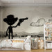 Αυτή η ταπετσαρία τοιχογραφίας αποπνέει το πνεύμα της Άγριας Δύσης με μια στυλιζαρισμένη εικονογράφηση ενός καουμπόη που δείχνει το περίστροφό του, μέσα σε ένα τοπίο ερήμου. Οι ασπρόμαυρες γραμμές, σε συνδυασμό με ένα υφή φόντου, δημιουργούν μια vintage και τολμηρή ατμόσφαιρα, ιδανική για μια συναρπαστική διακόσμηση.