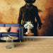 Αυτή η ταπετσαρία τοίχου συλλαμβάνει την ουσία της Άγριας Δύσης μέσα από μια εμβληματική σιλουέτα καουμπόι, που στέκεται περήφανα σε μια μυστηριώδη ατμόσφαιρα ζεστών χρωμάτων. Οι αποχρώσεις του πορτοκαλί, του καφέ και του μαύρου συνδυάζονται για να δημιουργήσουν ένα φόντο που προκαλεί το ηλιοβασίλεμα, προσθέτοντας βάθος και ένταση στον χώρο.
