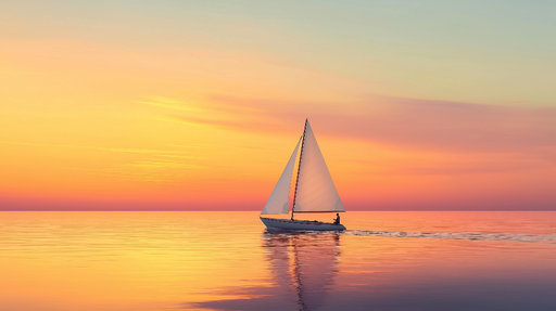 WonderMuralΑυτή η εμβληματική tapeta δείχνει ένα ιστιοφόρο να γλιστράει ήρεμα σε γαλήνια νερά, κάτω από ένα πολυτελές ηλιοβασίλεμα λουσμένο σε ροζ και πορτοκα...