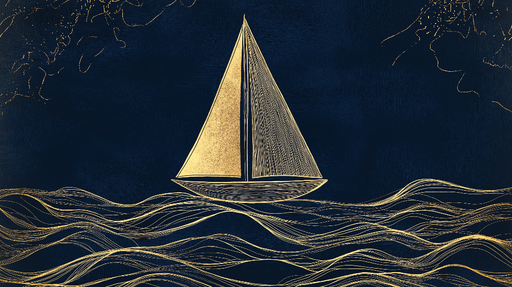 WonderMuralΑυτή η υπέροχη ταπετσαρία τοίχου διαθέτει ένα χρυσό ιστιοφόρο που πλέει σε στυλιζαρισμένα κύματα μελάνης σε βαθύ ναυτικό μπλε φόντο. Οι λεπτομερείς...