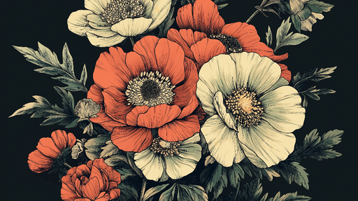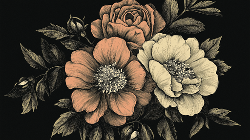 Προβολή πλήρων λεπτομερειώνΤαπετσαρία τοιχογραφίας λουλούδια | Vintage λουλούδια σε μαύρο φόντο