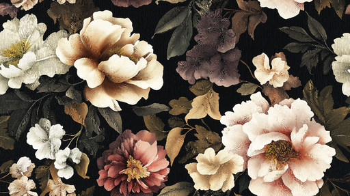 Προβολή πλήρων λεπτομερειώνΤαπετσαρία τοιχογραφίας floral | Κλασικό μοτίβο λουλουδιών σε μαύρο φόντο