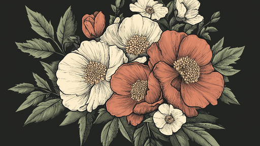 WonderMuralΑυτή η ταπετσαρία τοίχου διαθέτει ένα μεγαλοπρεπές μοτίβο vintage λουλουδιών, παρουσιάζοντας πολύχρωμα λουλούδια σε ζεστούς τόνους κόκκινου και λευ...