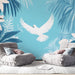 Αυτή η υπέροχη τιρκουάζ ταπετσαρία τοίχου είναι διακοσμημένη με πλούσιους φοίνικες και ένα όμορφο περιστέρι σε πτήση, προσφέροντας μια αίσθηση φρεσκάδας και κομψότητας σε κάθε εσωτερικό χώρο. Οι αποχρώσεις του μπλε, από απαλό τυρκουάζ έως βαθύ μπλε, δημιουργούν μια χαλαρωτική ατμόσφαιρα και ενθαρρύνουν τη φυγή, ιδανική για μοντέρνους χώρους διαβίωσης.
