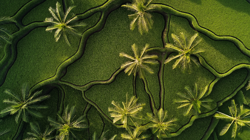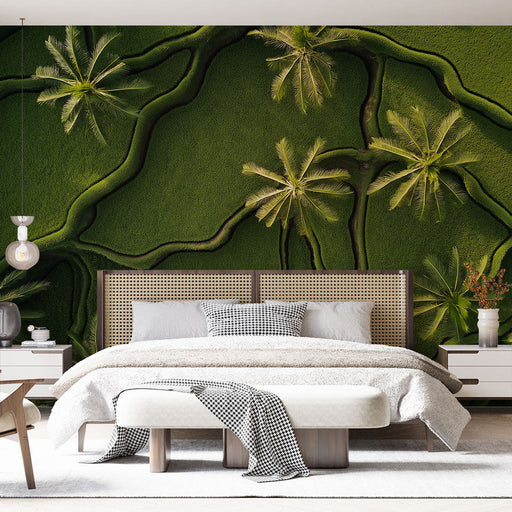 Προβολή πλήρων λεπτομερειώνΤαπετσαρία τοιχογραφία φυσικό τοπίο | Χωράφια ρυζιού και φοίνικες κάτω από συννεφιασμένο ουρανό