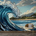 Αυτή η ταπετσαρία τοίχου διαθέτει ένα μεγαλοπρεπές κύμα ωκεανού, αποτυπωμένο σε αποχρώσεις του έντονου μπλε και ζωντανές λεπτομέρειες που δίνουν την ψευδαίσθηση της κίνησης. Η σκηνή εμπλουτίζεται από ένα ήρεμο παραθαλάσσιο τοπίο στο φόντο, όπου οι πράσινοι λόφοι συναντούν τη χρυσή άμμο και τον γαλάζιο ουρανό.