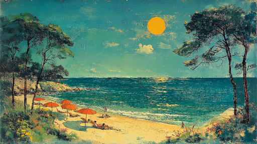 Προβολή πλήρων λεπτομερειώνTapete de playa | Escena relajante de playa con siluetas humanas