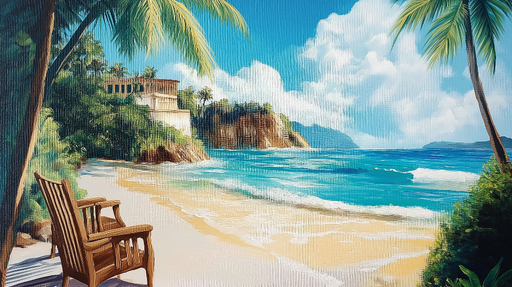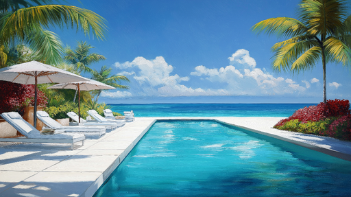 WonderMuralΤο ταπετσαρία μας θυμίζει μια παραδεισένια παραλία όπου η άνεση και η γαλήνη βασιλεύουν. Ένα τυρκουάζ πισίνα λάμπει κάτω από τον ήλιο, περιτριγυρισ...