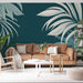 Αυτή η ταπετσαρία τοίχου σε βαθύ κυανό μπλε ενισχύεται από σχέδια λευκών τροπικών φύλλων, προσφέροντας μια κομψή και καταπραϋντική αντίθεση. Οι λεπτές γραμμές των φύλλων προσθέτουν μια αίσθηση ελαφρότητας και κομψότητας, δημιουργώντας μια ήρεμη ατμόσφαιρα σε κάθε δωμάτιο.