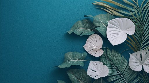 WonderMuralΑυτή η ταπετσαρία τοίχου διαθέτει έναν εκπληκτικό συνδυασμό από λευκά τροπικά φύλλα σε ένα πλούσιο γαλαζοπράσινο φόντο, δημιουργώντας μια ατμόσφαιρ...