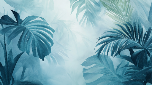 Προβολή πλήρων λεπτομερειώνΤαπετσαρία τοίχου μπλε τιρκουάζ | Τροπικά φύλλα σε απαλές αποχρώσεις