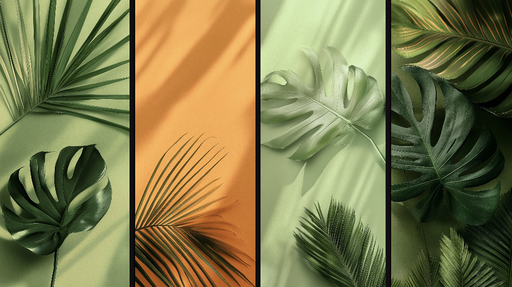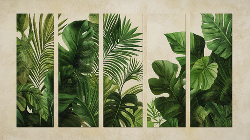 Προβολή πλήρων λεπτομερειώνΤαπετσαρία τροπικά φύλλα | Τέσσερα κομψά πλαίσια που παρουσιάζουν πλούσιο και πολύχρωμο φύλλωμα