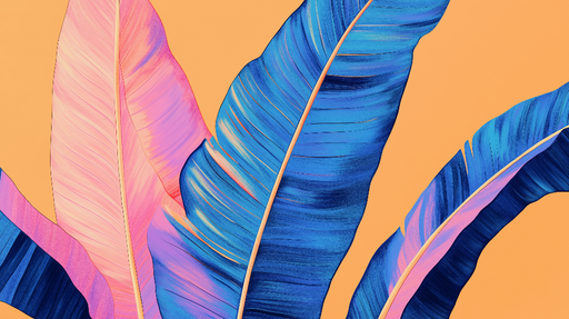 Προβολή πλήρων λεπτομερειώνΤαπετσαρία τροπικό φύλλωμα | Στυλιζαρισμένα πολύχρωμα φύλλα σε φόντο με διαβάθμιση