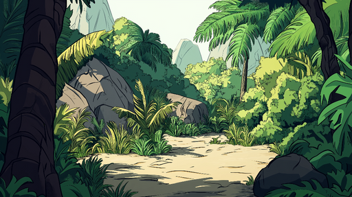 Προβολή πλήρων λεπτομερειώνΤαπετσαρία τοίχου ζούγκλα | Ένα πλούσιο τροπικό σκηνικό με φοίνικες και βράχια
