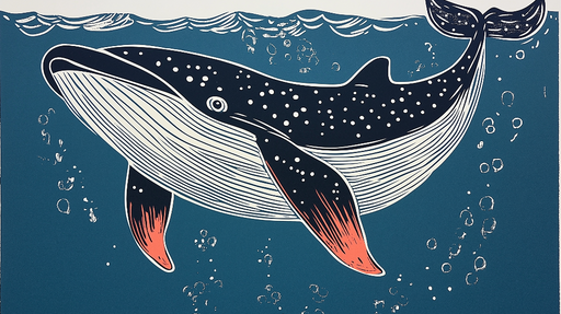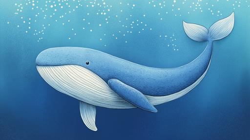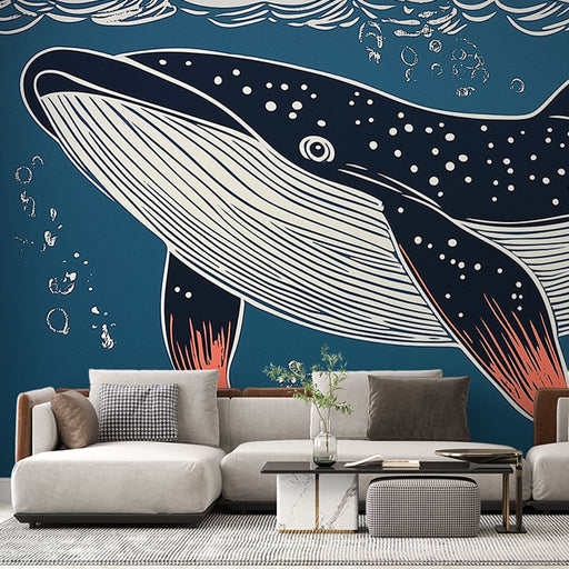 Προβολή πλήρων λεπτομερειώνΤαπετσαρία τοιχογραφίας φάλαινα | Καλλιτεχνική απεικόνιση μιας μεγαλοπρεπούς φάλαινας σε έναν μπλε ωκεανό