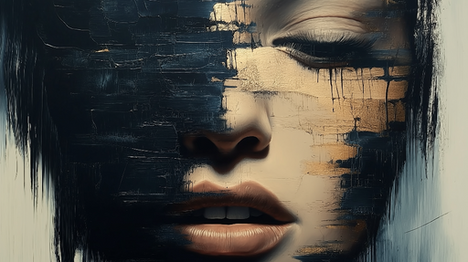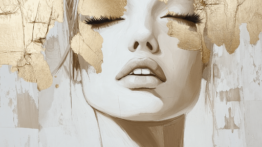 Προβολή πλήρων λεπτομερειώνΤαπετσαρία τοιχογραφίας γυναικείο πρόσωπο | Καλλιτεχνικό πορτρέτο με χρυσές πινελιές