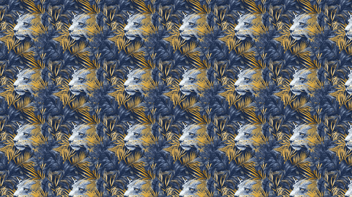 Προβολή πλήρων λεπτομερειώνTapete με φυτική και ζωική κομψότητα | Κεφάλια γατών σε χρυσό και μπλε τροπική φυλλωσιά