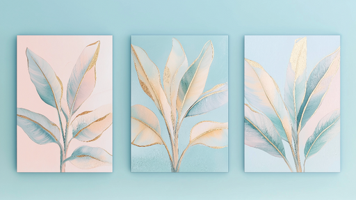 Προβολή πλήρων λεπτομερειώνTapete στυλιζαρισμένο φύλλωμα | Απαλά φύλλα σε παστέλ αποχρώσεις και χρυσές λεπτομέρειες
