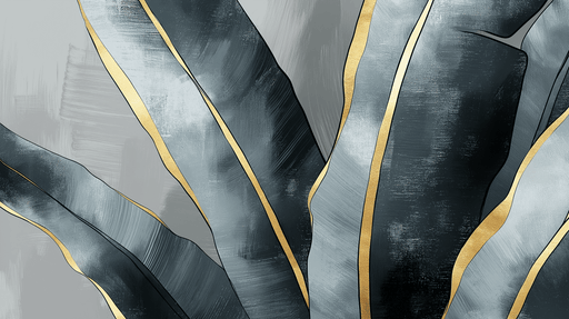 Προβολή πλήρων λεπτομερειώνΤαπετσαρία τοιχογραφίας κομψά φύλλα | Αφηρημένο σχέδιο σε αποχρώσεις του γκρι με χρυσές πινελιές