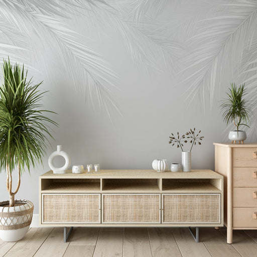 WonderMuralΑυτό το λεπτό ταπετσαρία τοιχωμάτων διαθέτει ένα διακριτικό μοτίβο φύλλων φοίνικα σε ανοιχτό γκρι, δημιουργώντας μια γαλήνια και καταπραϋντική ατμό...